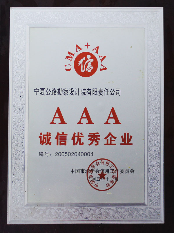 2005年12月AAA誠(chéng)信優(yōu)秀企業(yè)