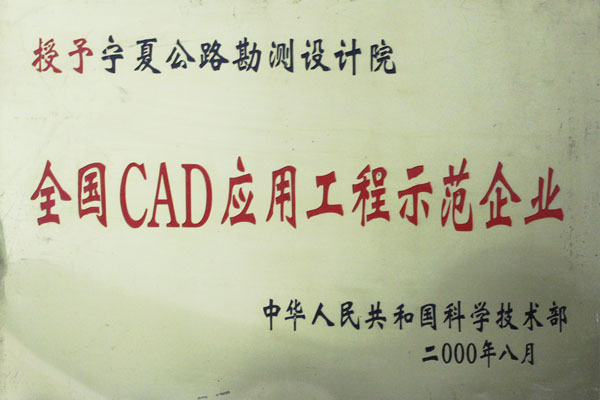 2000年8月全國CAD應(yīng)用工程示范企業(yè)