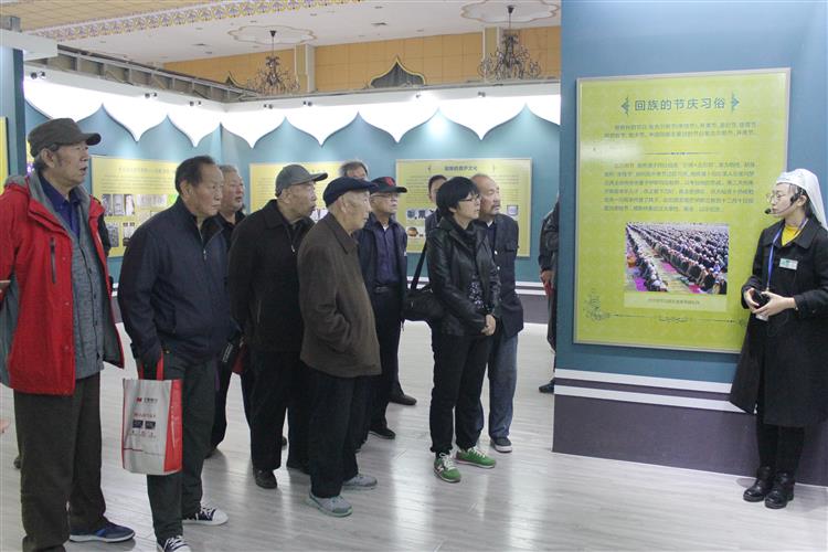 中華回鄉(xiāng)文化園被譽(yù)為“中國的泰姬陵”。因?yàn)樗且粋€具有濃郁伊斯蘭風(fēng)格的建筑群。進(jìn)入中華回鄉(xiāng)文化園,首先映入眼簾的是高大偉岸的文化園主體大門,白色的伊斯蘭基調(diào)和浮雕彩繪精巧地裝飾著飽滿的穹頂,在藍(lán)天的映襯下,格外壯觀。老同志們一行參觀了中國回族博物館、回族禮儀大殿、民俗村等景點(diǎn),觀看了由阿伊莎藝術(shù)團(tuán)表演的回族特色風(fēng)情節(jié)目,既感受到回族人民深厚的歷史文化積淀,又充分領(lǐng)略到回族人民在建筑風(fēng)格、工藝美術(shù)、民俗風(fēng)情等方面的獨(dú)特之處。