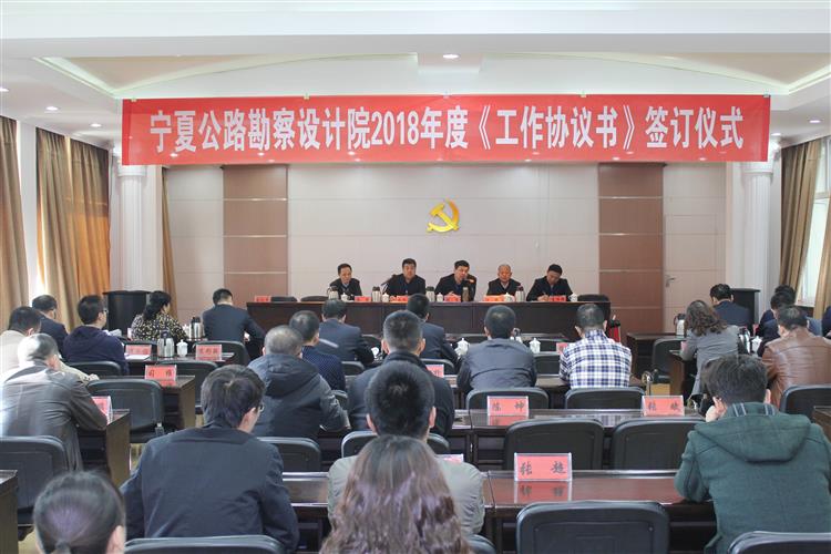為持續(xù)推進(jìn)寧夏公路勘察設(shè)計院快速穩(wěn)健發(fā)展,立足新起點(diǎn)、創(chuàng)造新輝煌,2018年度工作協(xié)議和黨委意識形態(tài)、社會綜治等責(zé)任書簽訂儀式于3月7日在公司二樓會議室順利舉行。參加本次儀式主要有院領(lǐng)導(dǎo)、各部門負(fù)責(zé)人,以及副總工程師等相關(guān)人員。