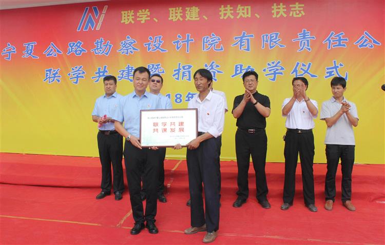 8月9日,寧夏公路勘察設(shè)計院有限責任公司聯(lián)學共建暨捐資助學儀式在大營村隆重舉行。固原市委常委、政府副市長金敬東,西吉縣委常委、吉強鎮(zhèn)黨委書記劉克虎,吉強鎮(zhèn)黨委委員、副鎮(zhèn)長單哈三,寧夏公路勘察設(shè)計院黨委書記、總經(jīng)理林飛,寧夏院黨委委員、副總經(jīng)理趙旭東,寧夏院黨委委員、管理第一黨支部書記張來虎,固原市西吉縣吉強鎮(zhèn)大營村第一書記、縣法院黨總支書記馬承賢,大營村黨支部書記王海忠,以及大營村全體黨員、數(shù)百位群眾和小學學生代表參加本次儀式。