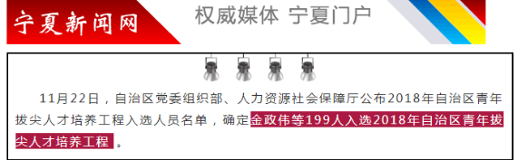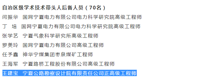 11月22日,寧夏自治區(qū)黨委組織部、自治區(qū)人力資源和社會(huì)保障廳聯(lián)合公布了2018年自治區(qū)青年拔尖人才培養(yǎng)工程入選人員名單。此次交通系統(tǒng)共入選三人,其中寧夏公路勘察設(shè)計(jì)院有限責(zé)任公司王建寶入選自治區(qū)級(jí)學(xué)術(shù)帶頭人后備人員、張繼周入選自治區(qū)優(yōu)秀青年后備骨干人員。