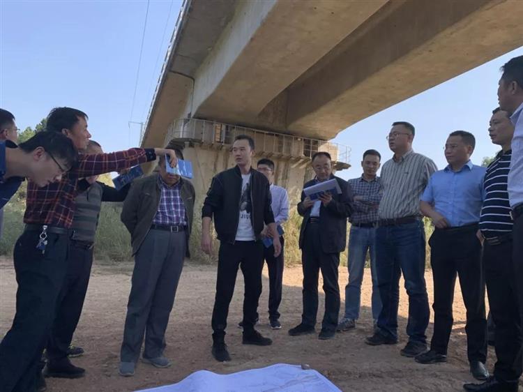 專家組對班山尾大橋現(xiàn)場進行實地踏勘并聽取匯報