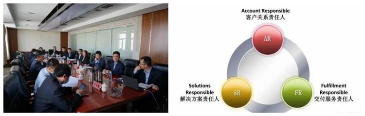 此次營銷活動充分體現(xiàn)了“鐵三角”協(xié)同作戰(zhàn)理念,在獲取線索后第一時間成立“鐵三角”營銷小組,制定明確的戰(zhàn)略目標(biāo)、部署詳細的戰(zhàn)術(shù)打法、謀劃可能的戰(zhàn)役攻堅方案。統(tǒng)籌協(xié)調(diào)寧夏院綜合規(guī)劃分院和市場管理處,打破部門壁壘,形成專業(yè)分工明確、職責(zé)清晰的“鐵三角”作戰(zhàn)團隊。由市場管理處作為AR(客戶經(jīng)理)制定客戶拜訪路徑并主導(dǎo)營銷談判,綜合規(guī)劃分院作為SR(解決方案經(jīng)理)兼FR(交付經(jīng)理)提供技術(shù)方案支持和交付案例展示。