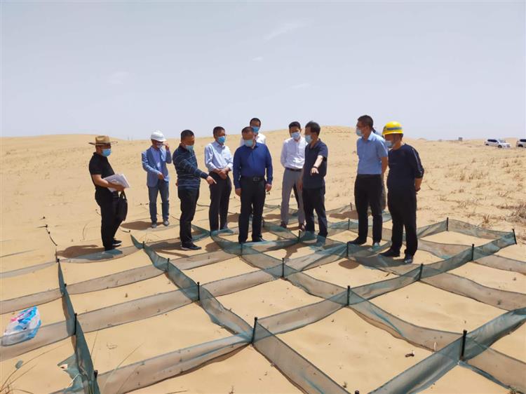 調(diào)研組觀摩風(fēng)沙工程防護體系建設(shè)