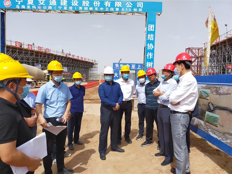 2020年5月14日,寧夏交通運輸廳黨委書記、廳長曹志斌對烏海至瑪沁公路(寧夏境)青銅峽至中衛(wèi)騰格里沙漠段工程進行現(xiàn)場調(diào)研,深入了解項目建設(shè)與科研進程,與參建及參研單位進行了深度交流。