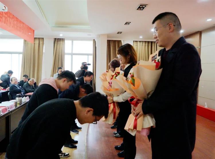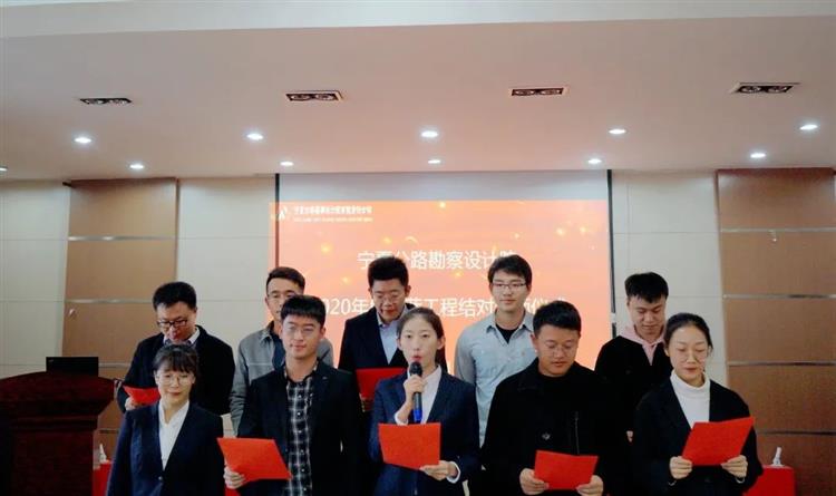 會議首先由院副總經(jīng)理、總工程師李偉群宣讀2020年度青藍雙方名單,隨后院領(lǐng)導(dǎo)為導(dǎo)師代表頒發(fā)聘書,徒弟們向師傅們獻花、鞠躬,并進行莊嚴宣誓。要以誠心、細心、精心、耐心的學(xué)習(xí)態(tài)度;勤學(xué)、勤問、勤看、勤聽的學(xué)習(xí)方法;達到成長、成熟、成才、成事的學(xué)習(xí)目的。
