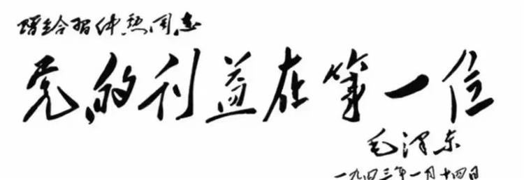 毛澤東親筆為習(xí)仲勛書寫“黨的利益在第一位”的題詞