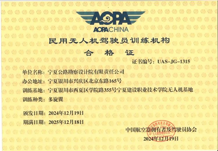 無人機(jī)技術(shù)作為現(xiàn)代測繪與勘察領(lǐng)域的新型技術(shù)手段,憑借其高效性、靈活性和精準(zhǔn)性等顯著優(yōu)勢,已在公路勘察設(shè)計(jì)、工程監(jiān)測、智慧交通管理等多個(gè)領(lǐng)域發(fā)揮重要作用。此次資質(zhì)的成功獲批,標(biāo)志著寧夏公路勘察設(shè)計(jì)院正式獲得"多旋翼無人機(jī)駕駛員培訓(xùn)"資格,不僅能夠系統(tǒng)化培養(yǎng)兼具理論素養(yǎng)與實(shí)踐技能的專業(yè)人才,更為無人機(jī)技術(shù)在交通勘察設(shè)計(jì)領(lǐng)域的深度應(yīng)用和創(chuàng)新發(fā)展提供了有力支撐,將有效推動(dòng)行業(yè)技術(shù)水平的整體提升。